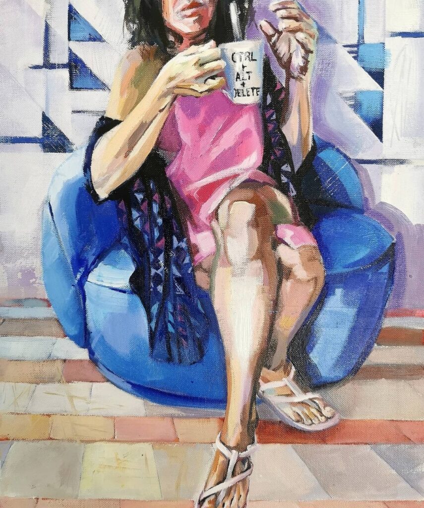 Vive en una búsqueda incansable de nuevas vías de expresión plástica, aunque la pintura suele ser su compañera inseparable.